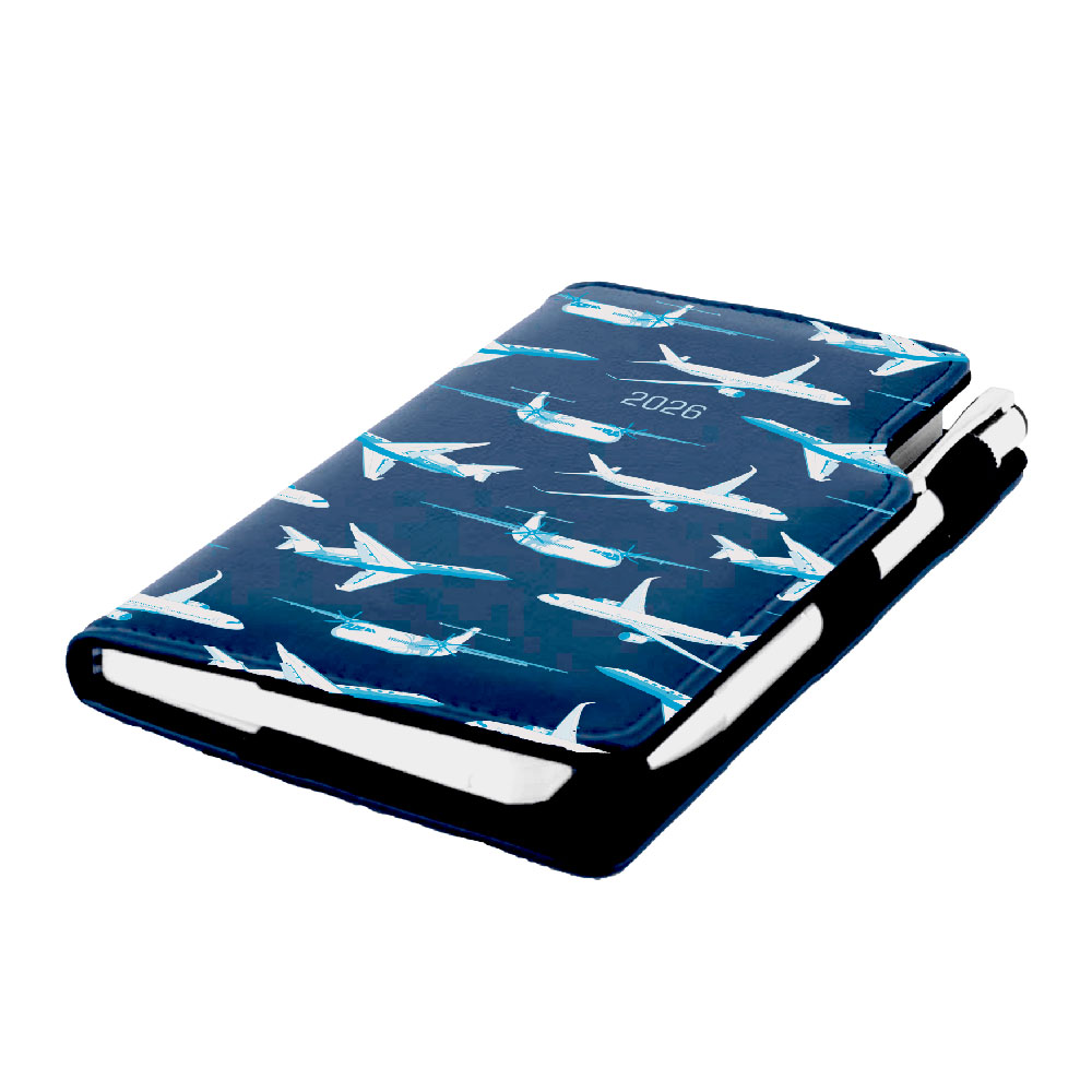 Diár DESIGN týždenný vreckový 2026 český - modrá - lietadlá
