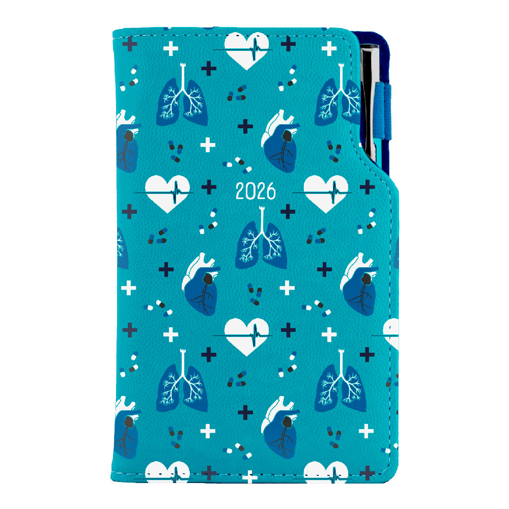 Diár DESIGN týždenný vreckový 2026 polský - tyrkysová- Doktor - srdce