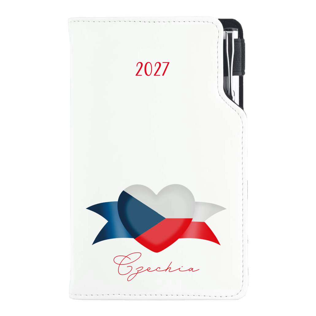 Diár DESIGN týždenný vreckový 2027 poľský - biela- Česko- vlajka