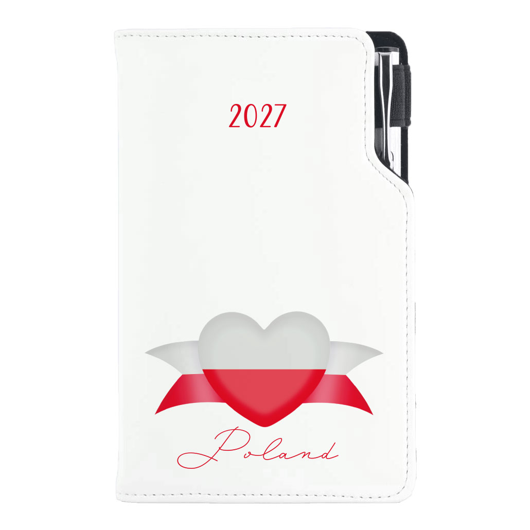 Diár DESIGN týždenný vreckový 2027 poľský - biela - Poľsko- vlajka