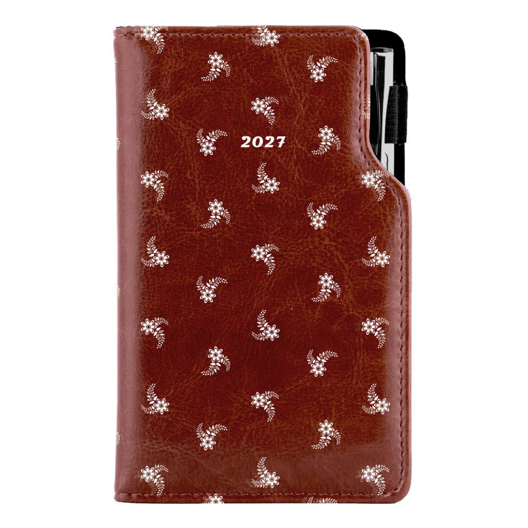 Diár DESIGN týždenný vreckový 2027 slovenský - hnedá - Biely kvet