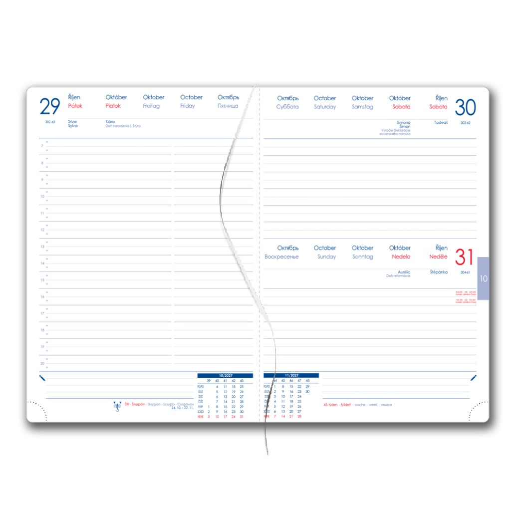 Diár obsahuje: okrúhle odtrhávací rožky,