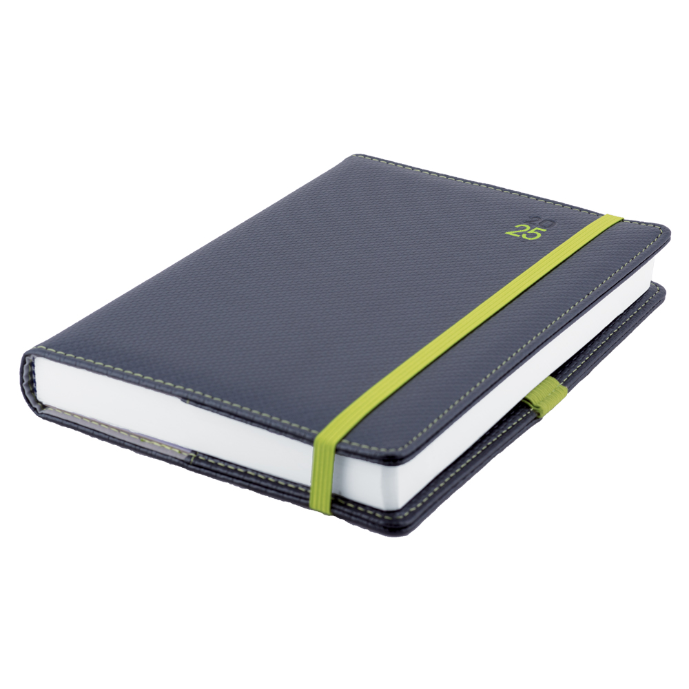 Diár ELASTIC denný A5 2025 slovenský - grafit/zelená gumička