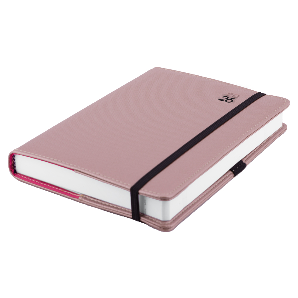 Diár ELASTIC denný A5 2026 polský - púdrová/čierna gumička