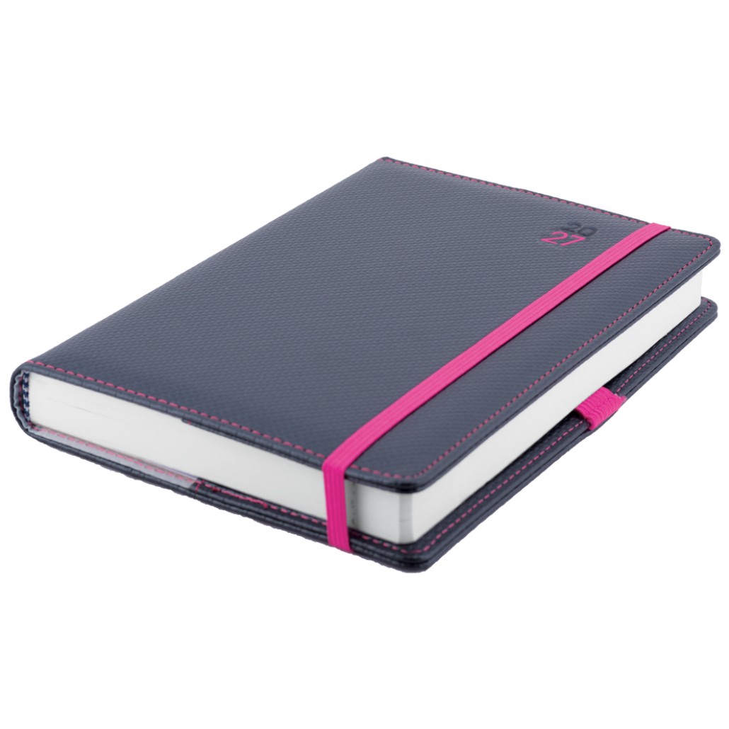 Diár ELASTIC denný A5 2027 polský - grafit/magenta gumička