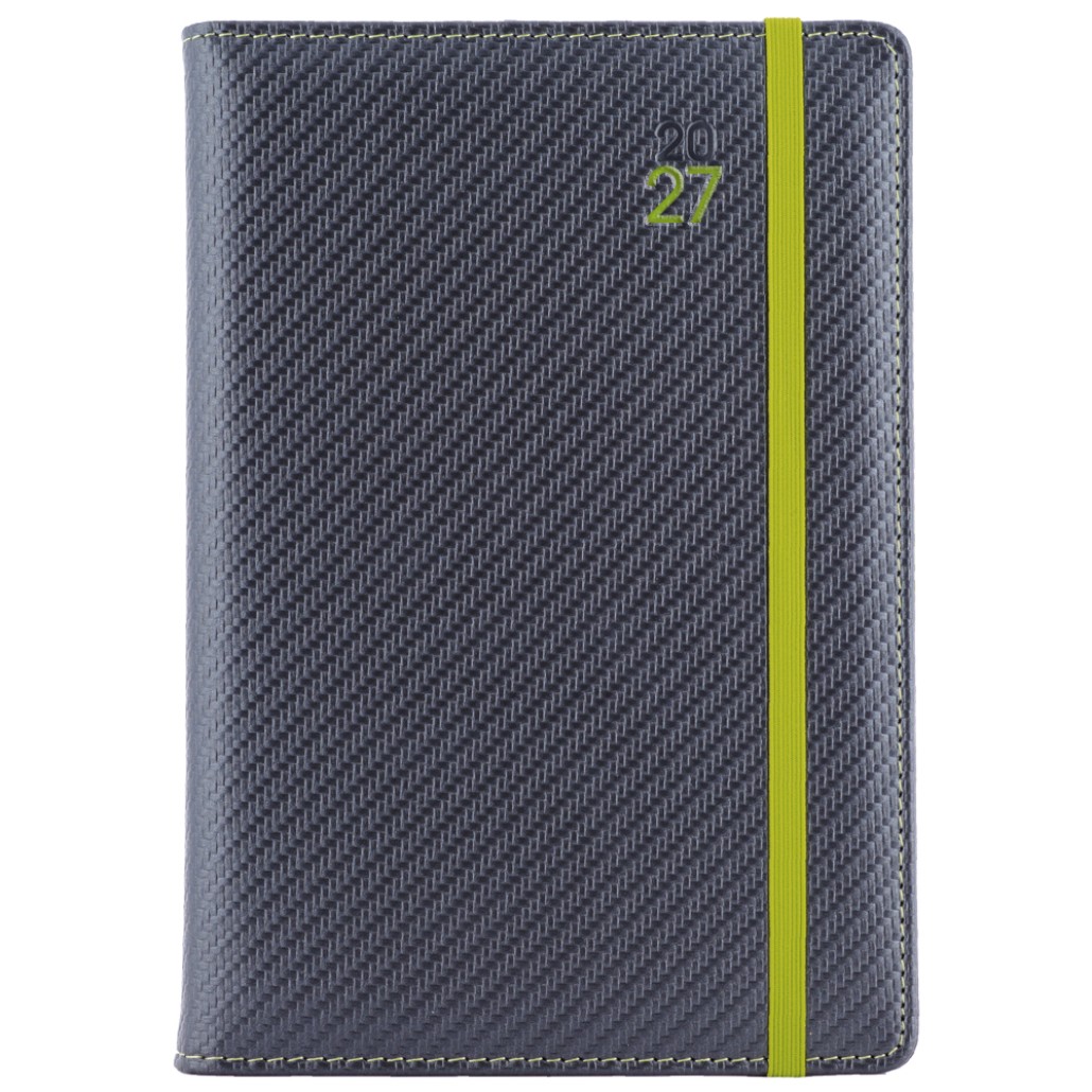 Diár ELASTIC denný A5 2027 slovenský - grafit/zelená gumička