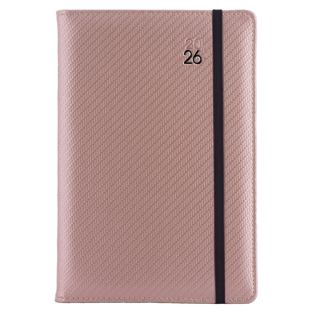 Diár ELASTIC týždenný A5 2026 polský - púdrová/čierna gumička