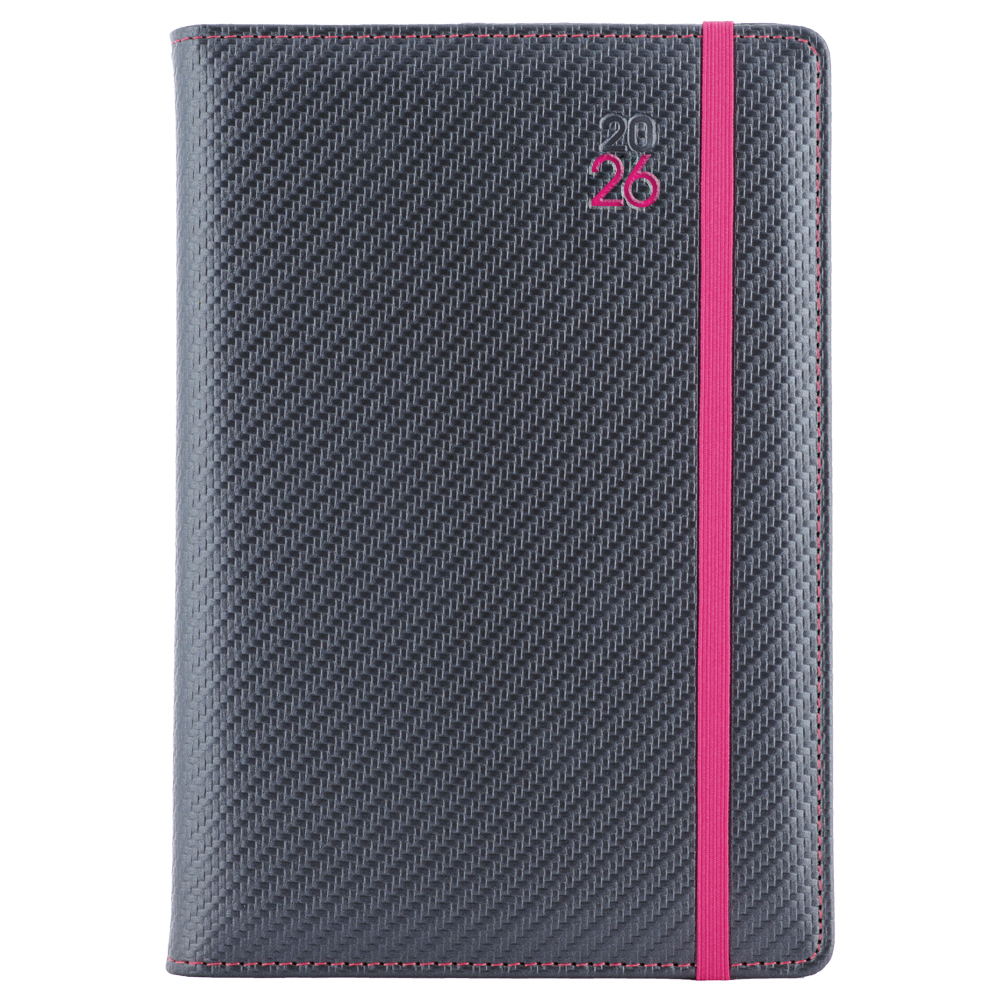 Diár ELASTIC týždenný A5 2026 slovenský - grafit/magenta gumička