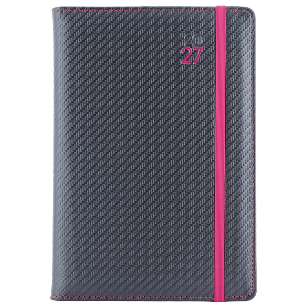 Diár ELASTIC týždenný A5 2027 polský - grafit/magenta gumička