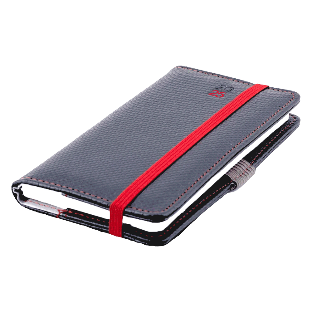 Diár ELASTIC týždenný vreckový 2025 český - grafit/červená gumička