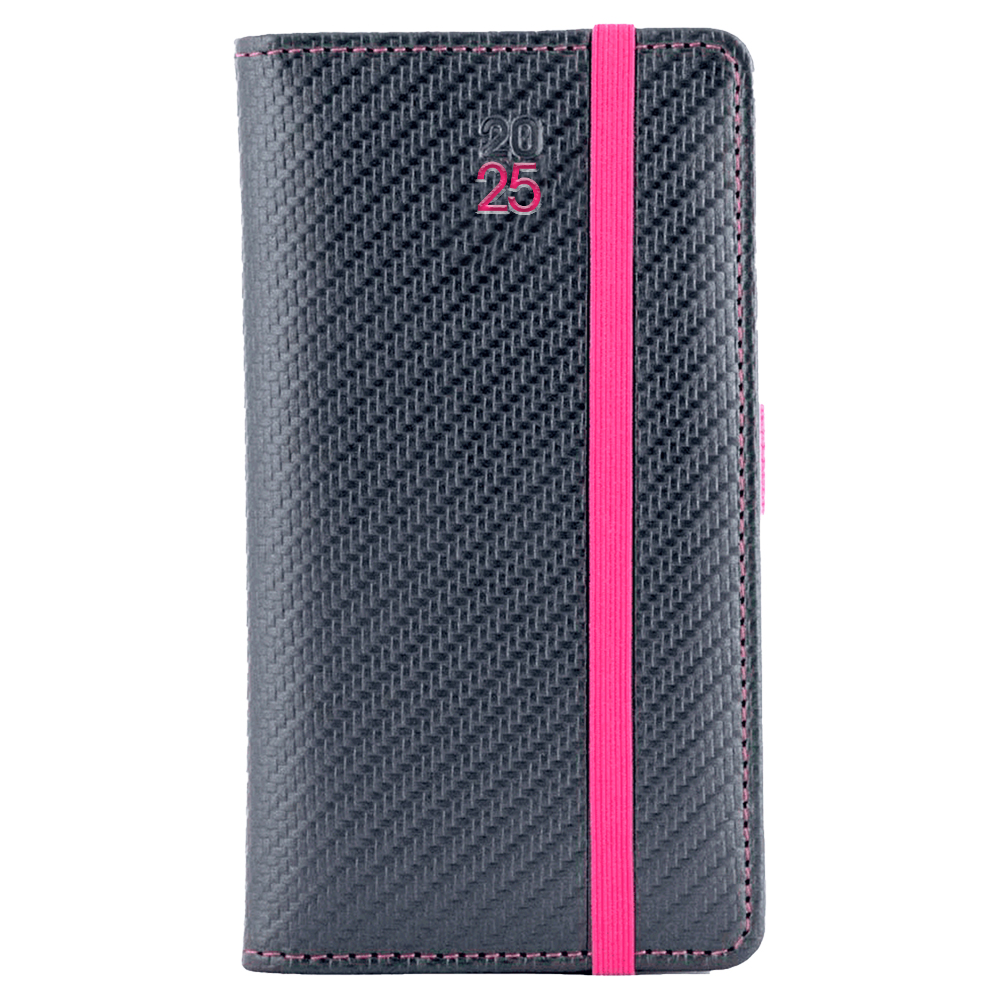Diár ELASTIC týždenný vreckový 2025 český - grafit/magenta gumička