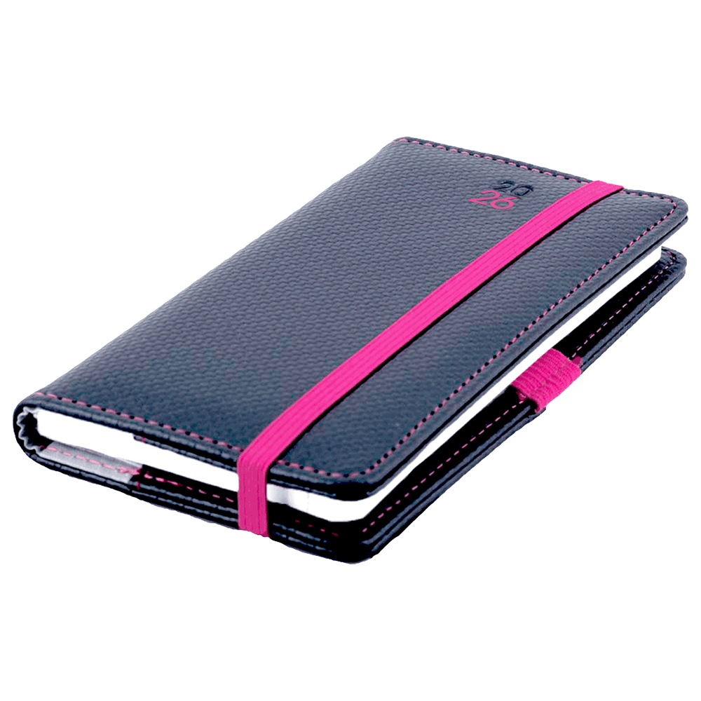 Diár ELASTIC týždenný vreckový 2026 český - grafit/magenta gumička