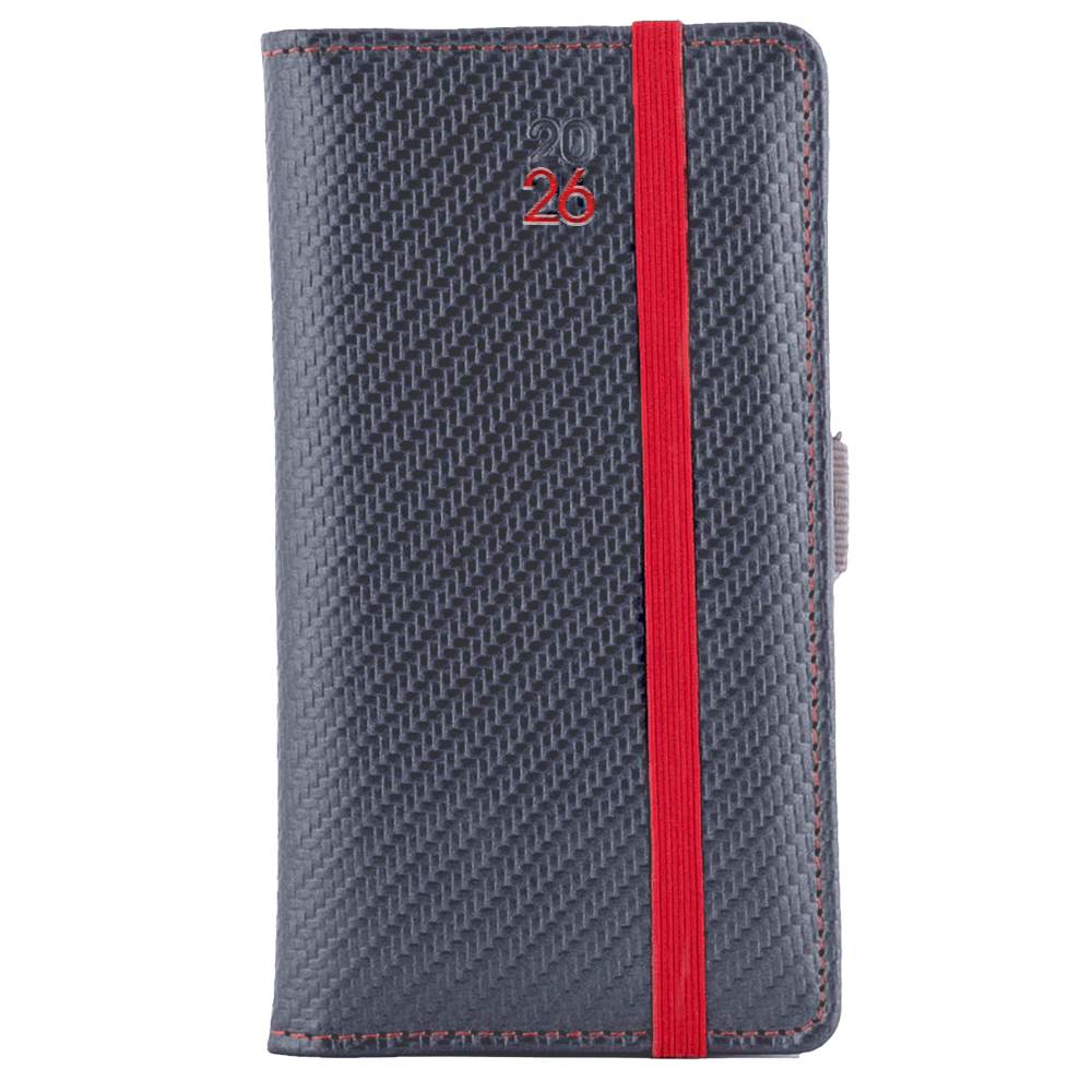 Diár ELASTIC týždenný vreckový 2026 polský - grafit/červená gumička