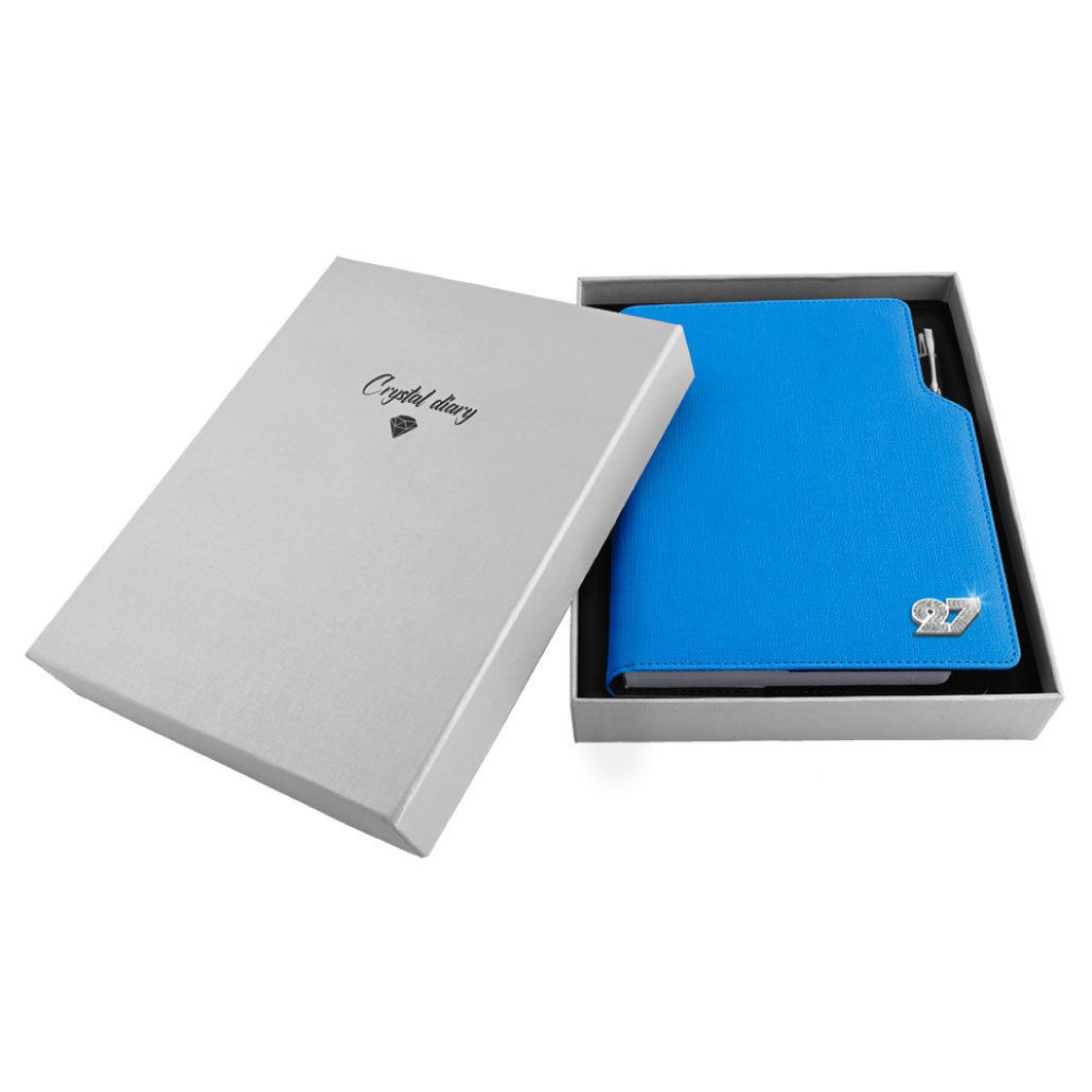 Diár je balený v darčekovej krabičke vystlanej saténom.