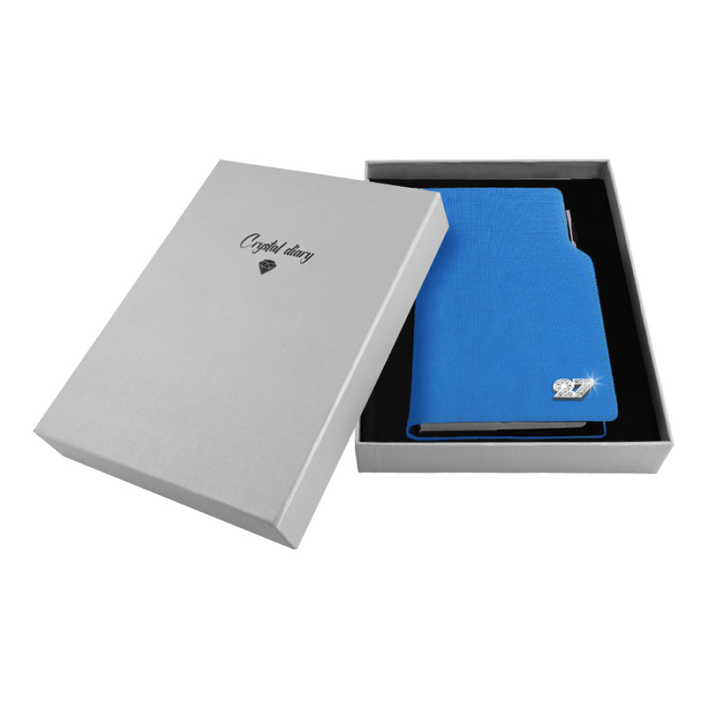 Diár je balený v darčekovej krabičke vystlanej saténom.