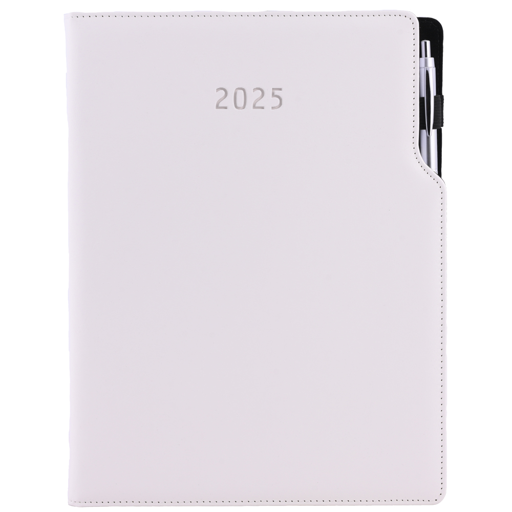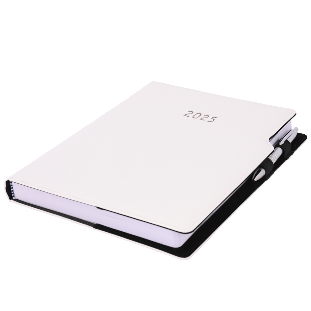 Diár GEP s perom denný A4 2025 polský - biela, biele obšitie