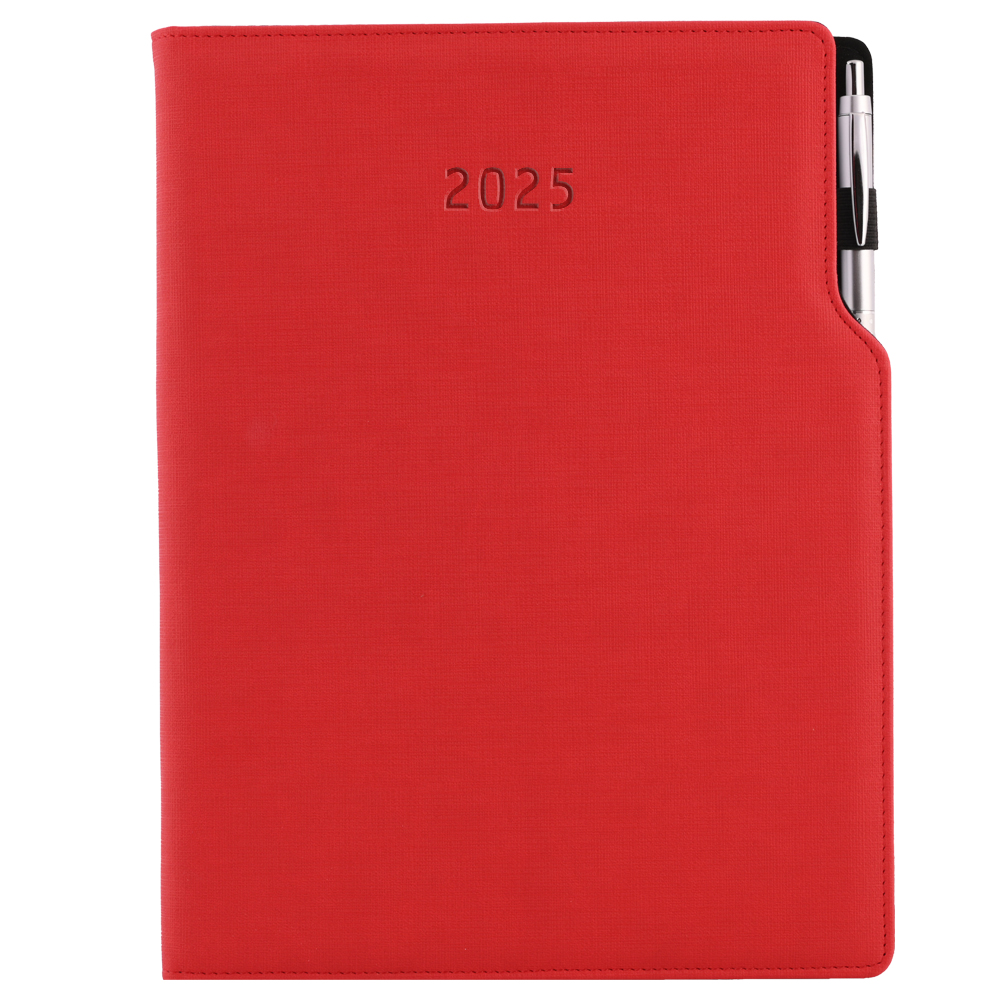 Diár GEP s perom denný A4 2025 polský - červená pastelová