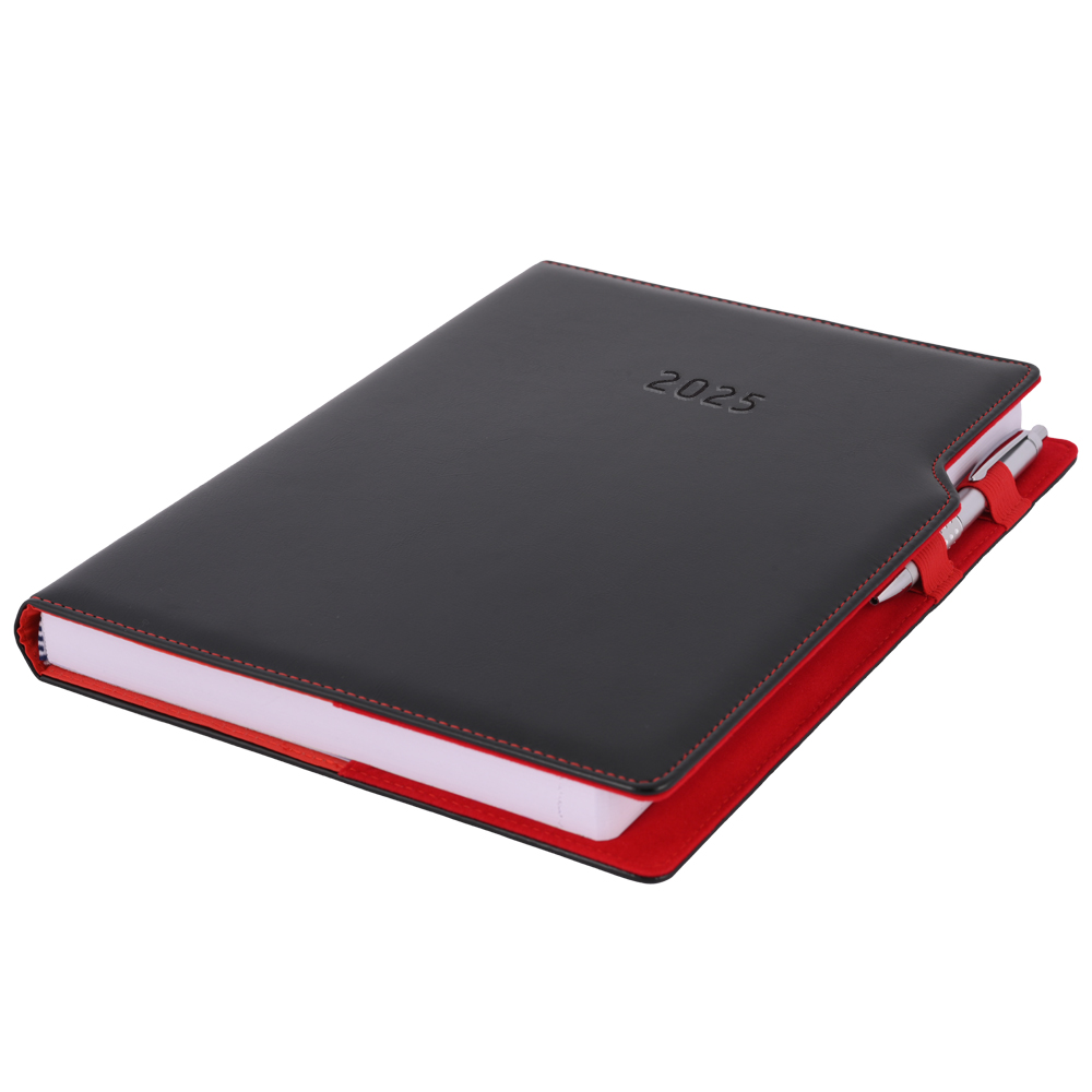 Diár GEP s perom denný A4 2025 polský - čierna, červené vnútro