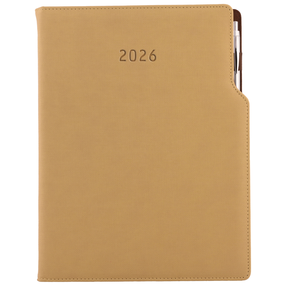 Diár GEP s perom denný A4 2026 - béžová/hnedé vnútro