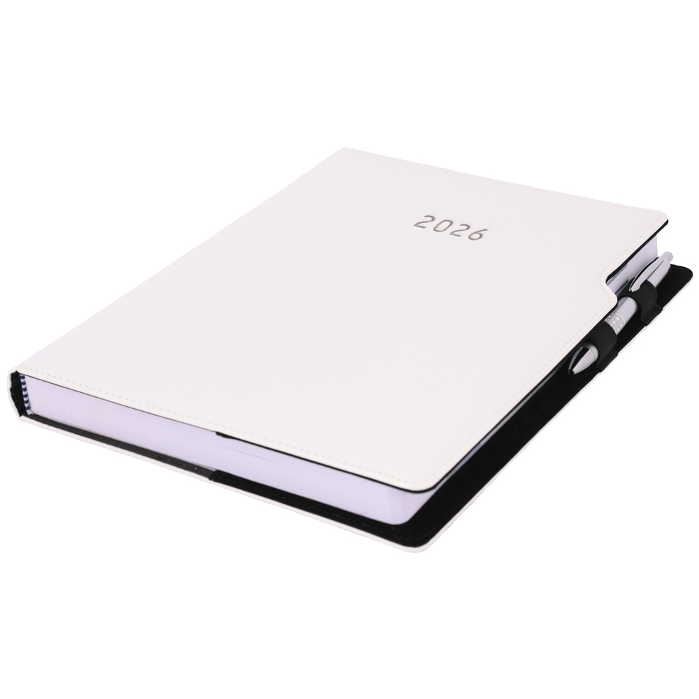 Diár GEP s perom denný A4 2026 polský - biela, biele obšitie