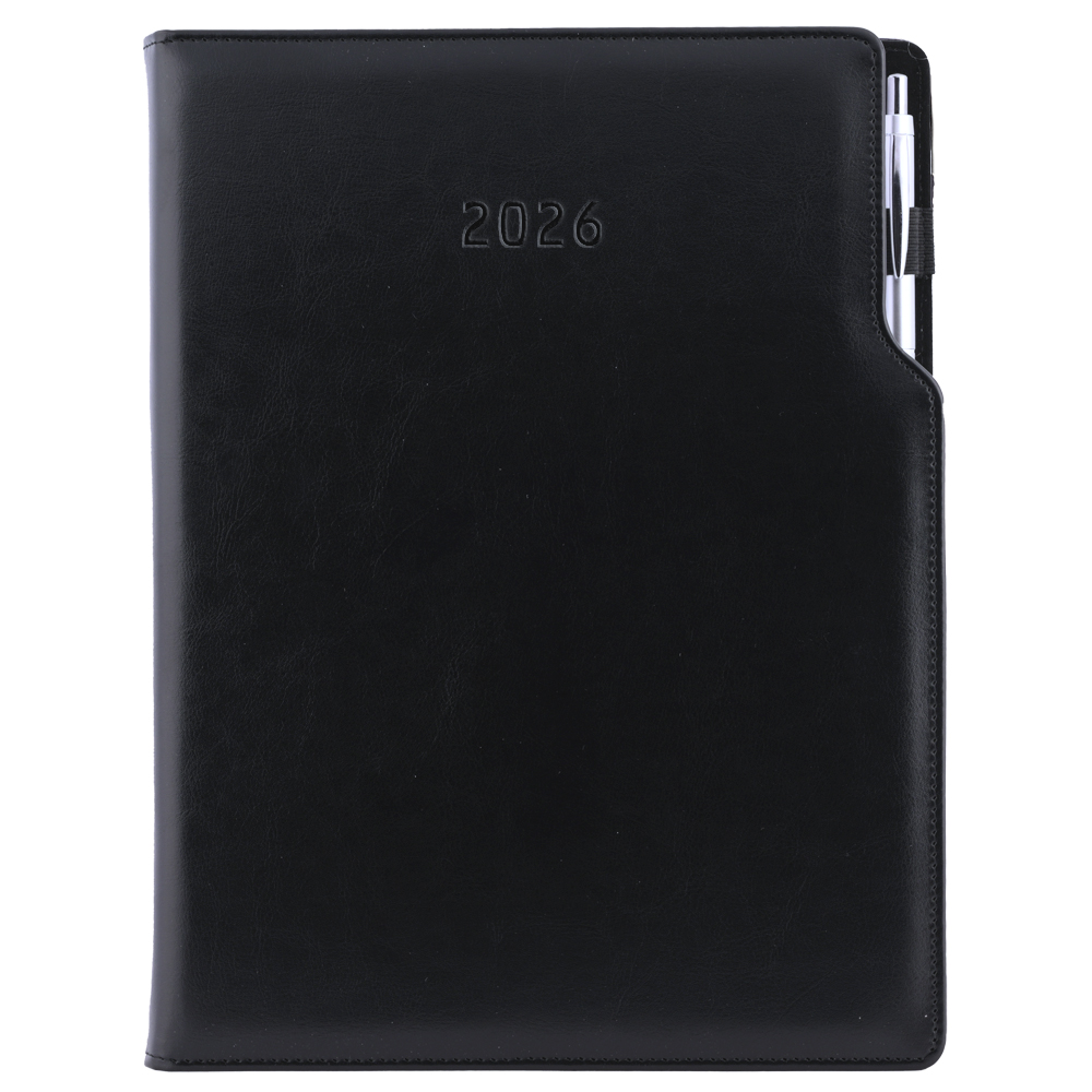 Diár GEP s perom denný A4 2026 polský - čierna, čierné vnútro