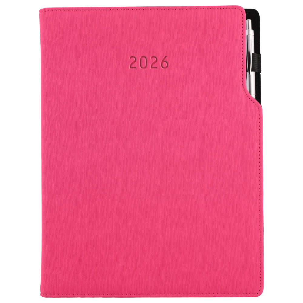 Diár obsahuje: krúhle odtrhávacie rožky, bielu záložku a pero