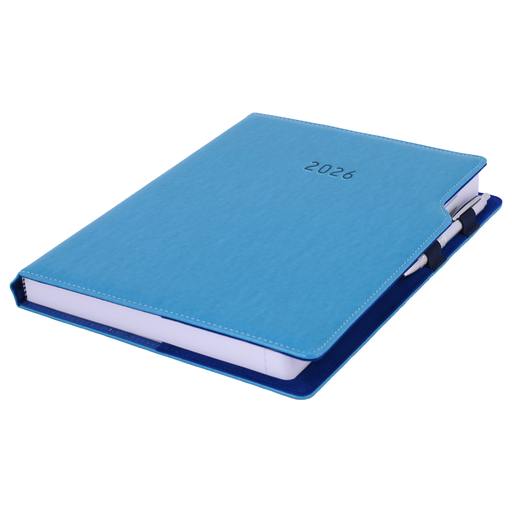 Diár GEP s perom denný A4 2026 polský - tyrkysová, modré vnútro
