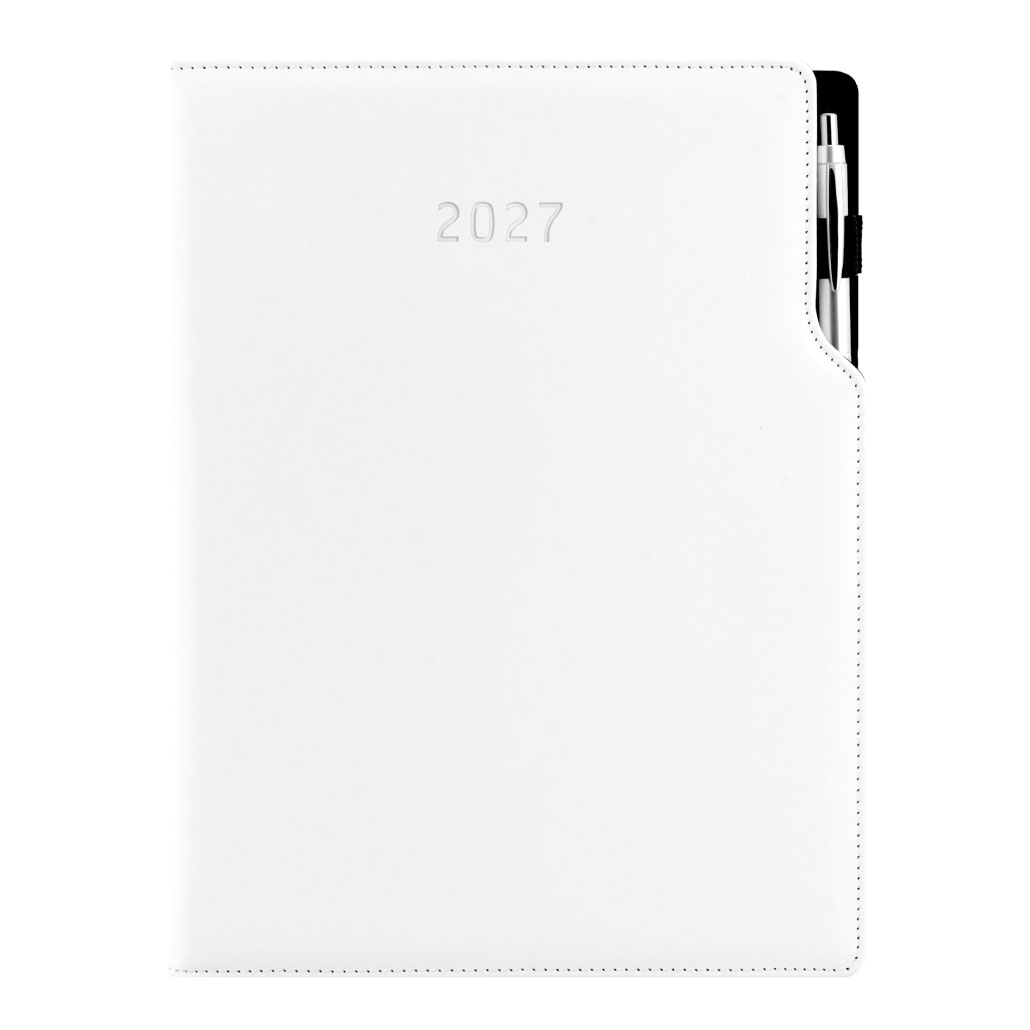 Diár GEP s perom denný A4 2027 polský - biela, biele obšitie
