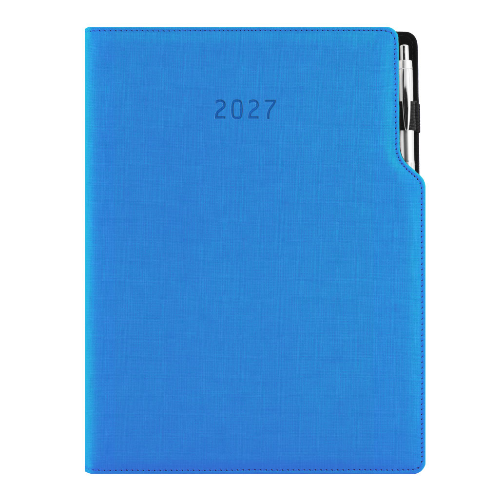 Diár GEP s perom denný A4 2027 polský - modrá pastelová