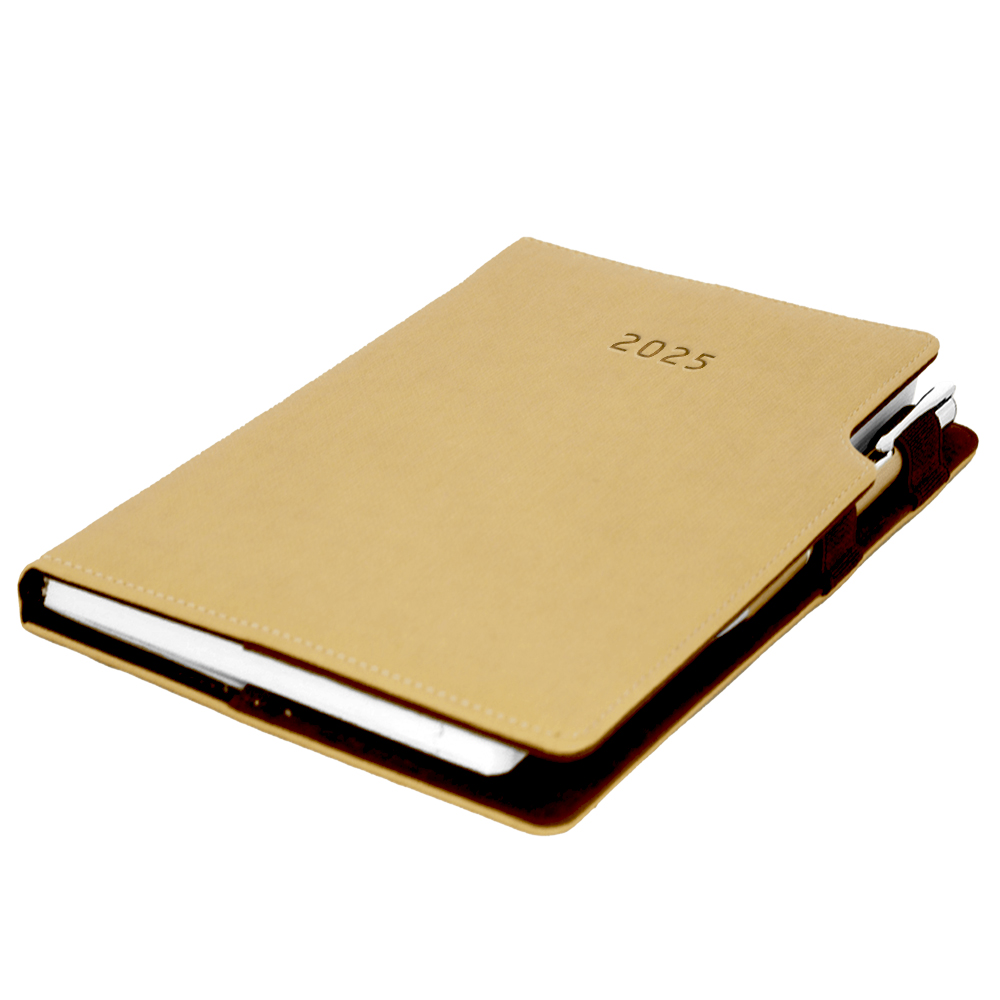 Diár GEP s perom denný A5 2025 český - béžová/hnedé vnútro