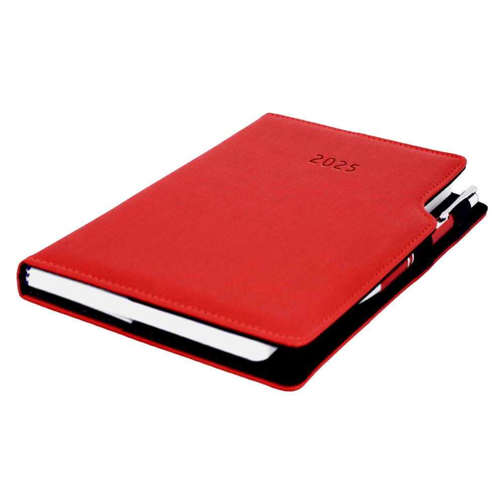 Diár obsahuje: okrúhle odtrhávacie rožky, bielu záložku a pero