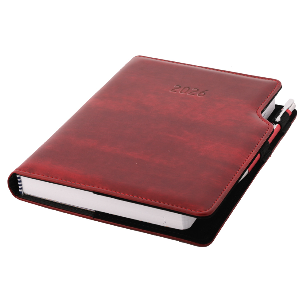 Diár GEP s perom denný A5 2026 český - bordó žíhaná