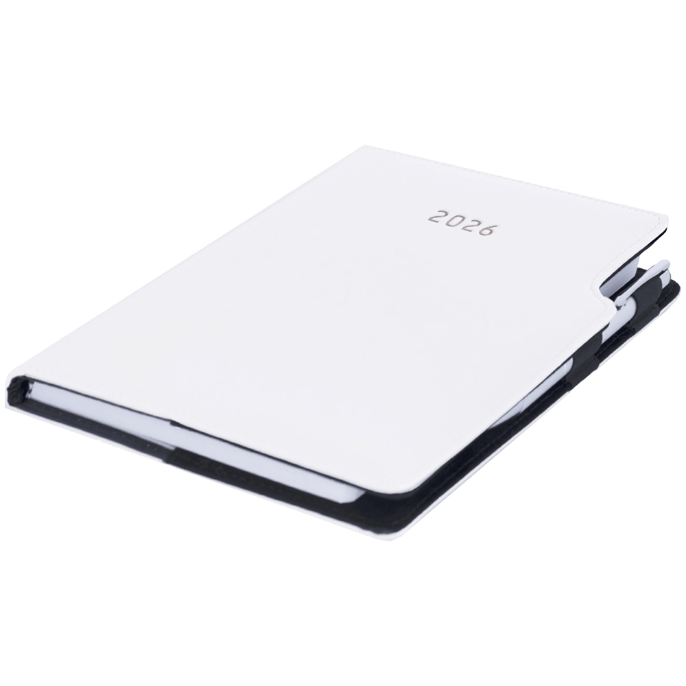 Diár GEP s perom denný B6 2026 - biela/ biele obšitie