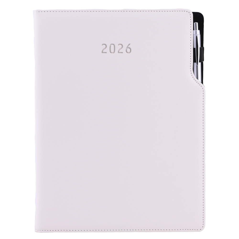Diár GEP s perom týždenný A4 2026 - biela/ biele obšitie