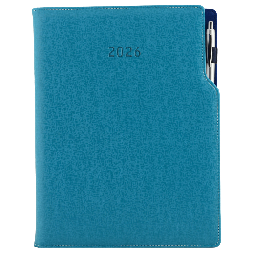 Diár GEP s perom týždenný A4 2026 polský - tyrkysová, modré vnútro