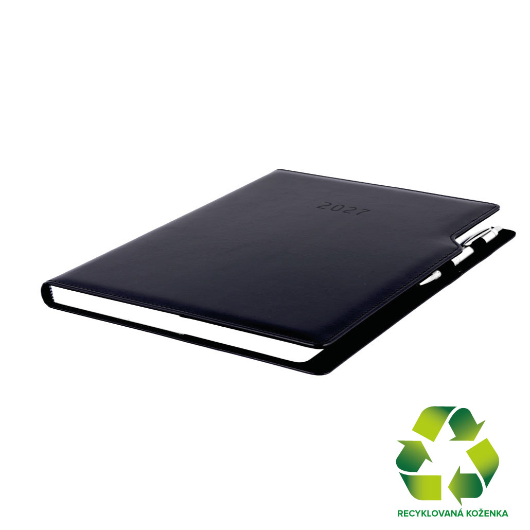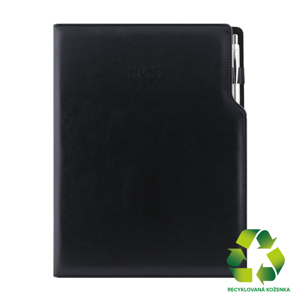 Diár GEP s perom týždenný A4 2027 - čierna/čierne vnútro - recyklovaná koženka