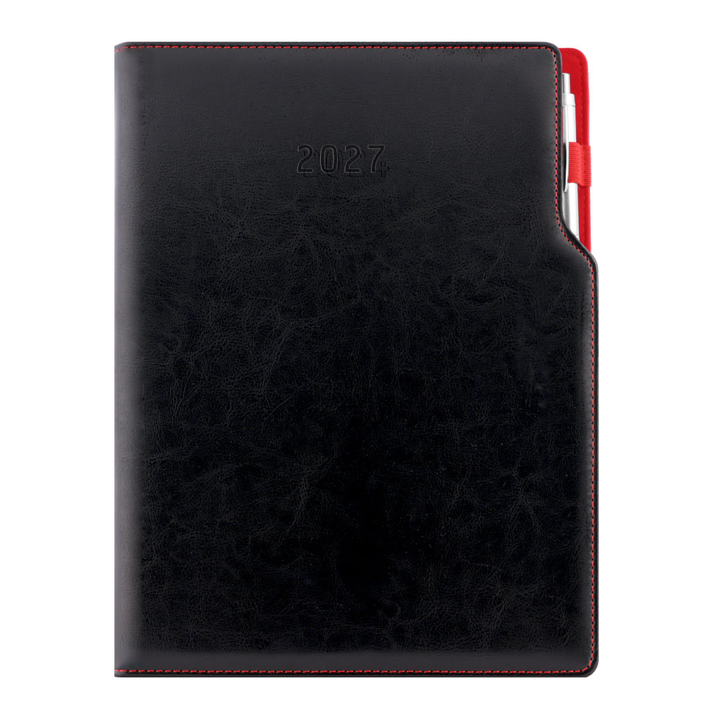 Diár GEP s perom týždenný A4 2027 polský - čierna, červené vnútro