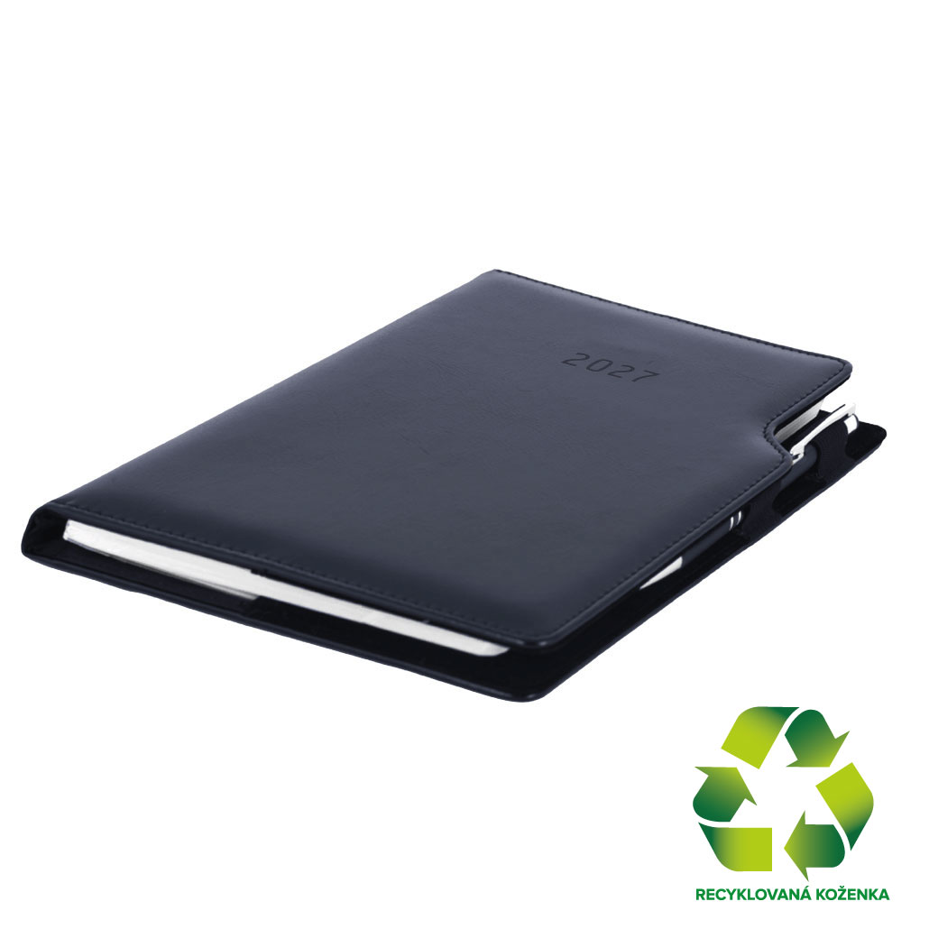Diár GEP s perom týždenný A5 2027 český - čierna/čierne vnútro - recyklovaná koženka