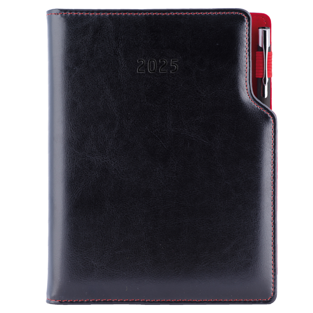 Diár GEP s perom týždenný B5 2025 polský - čierna, červené vnútro