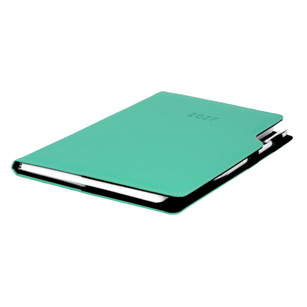 Diár obsahuje: okrúhle odtrhávcie rožky, bielu záložku a pero