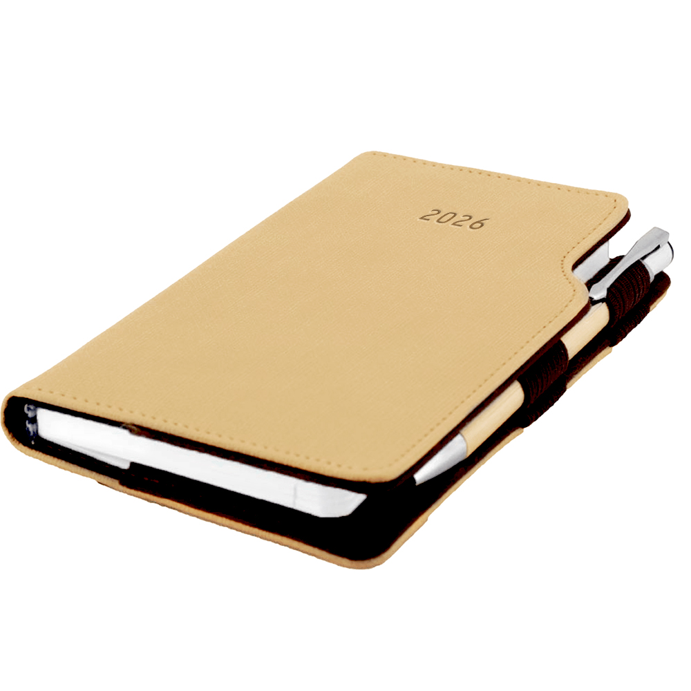 Diár GEP s perom týždenný vreckový 2026 slovenský - béžová/hnedé vnútro