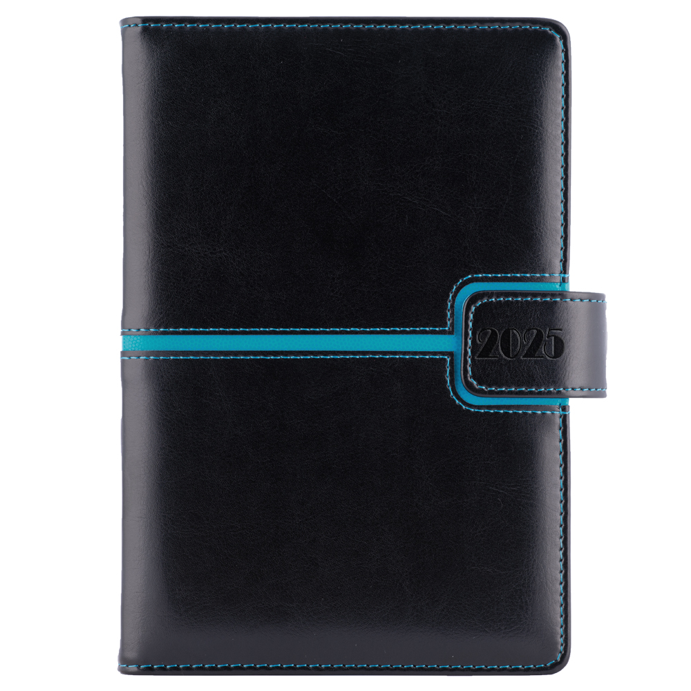 Diár MAGNETIC týždenný špeciál A5 2025 - čierna/tyrkysová