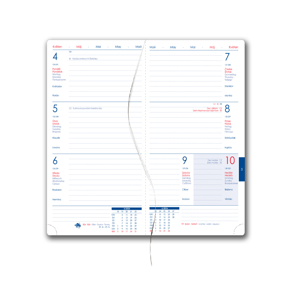 Diár obsahuje: okrúhle odtrhávacie rožky a bielu záložku
