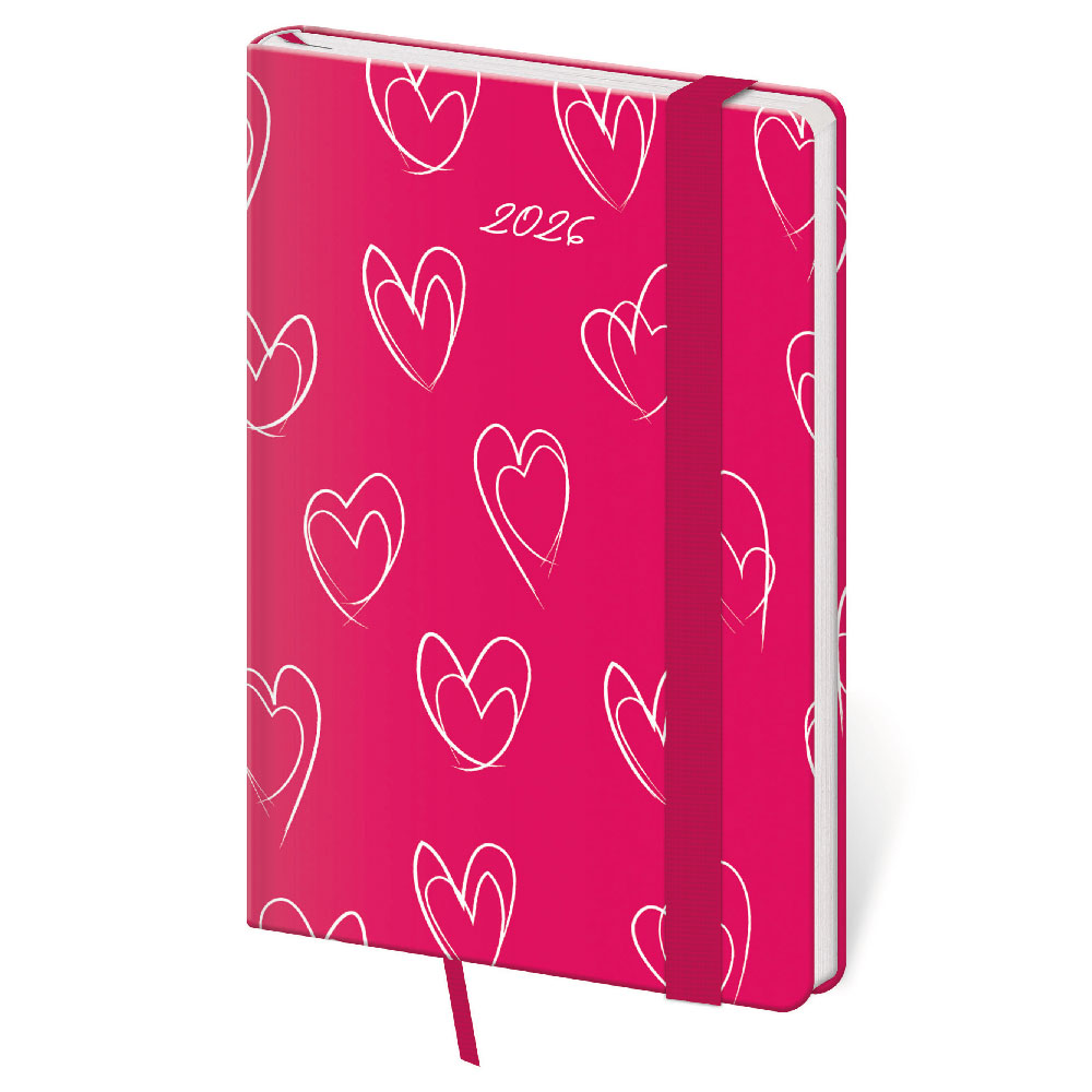 Diár týždenný vreckový 2026 Vario - Hearts s gumičkou