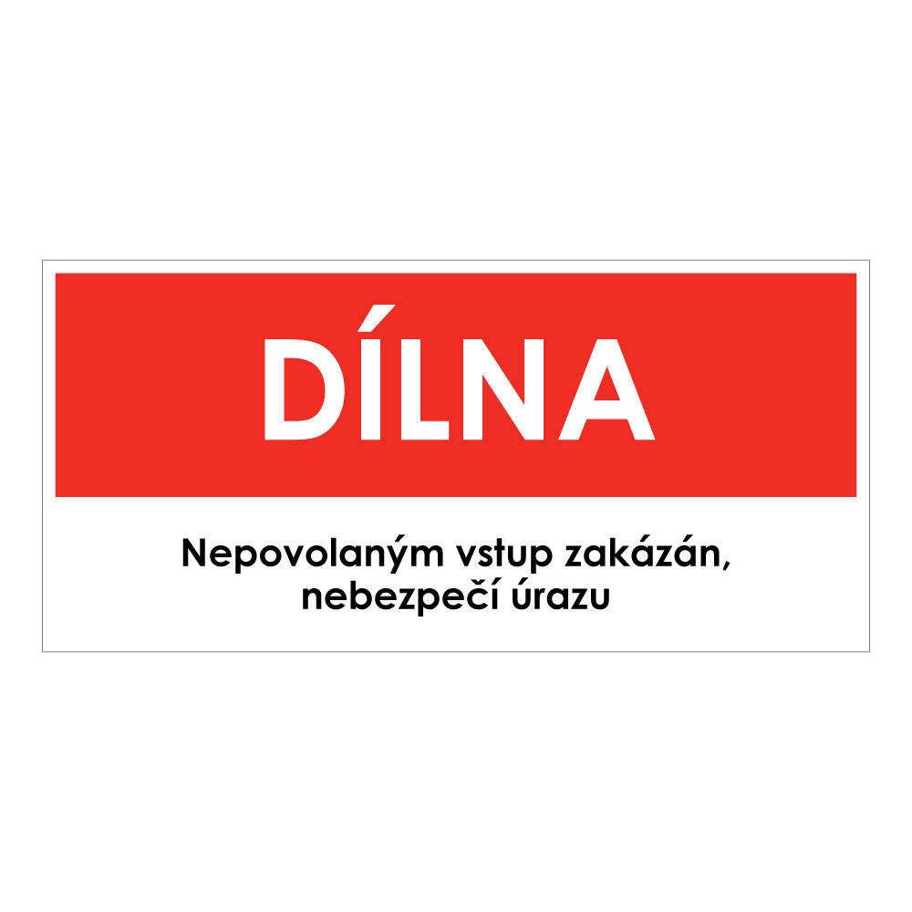DÍLNA, červená, samolepka, 190x90 mm