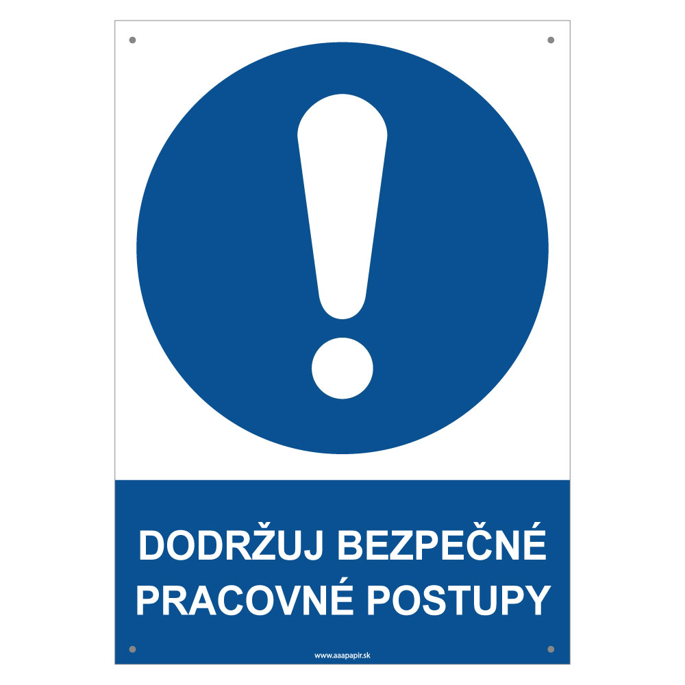 Dodržuj bezpečné pracovné postupy - bezpečnostná tabuľka, plast 0,5 mm - A4