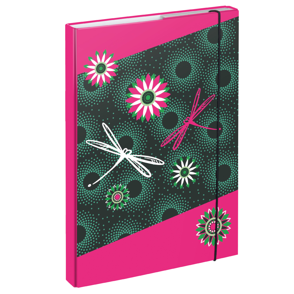 • Ochranné dosky na úschovu zošitov alebo iných dokumentov, s vnútornou klopu proti vypadnutiu, zaistené gumičkou.