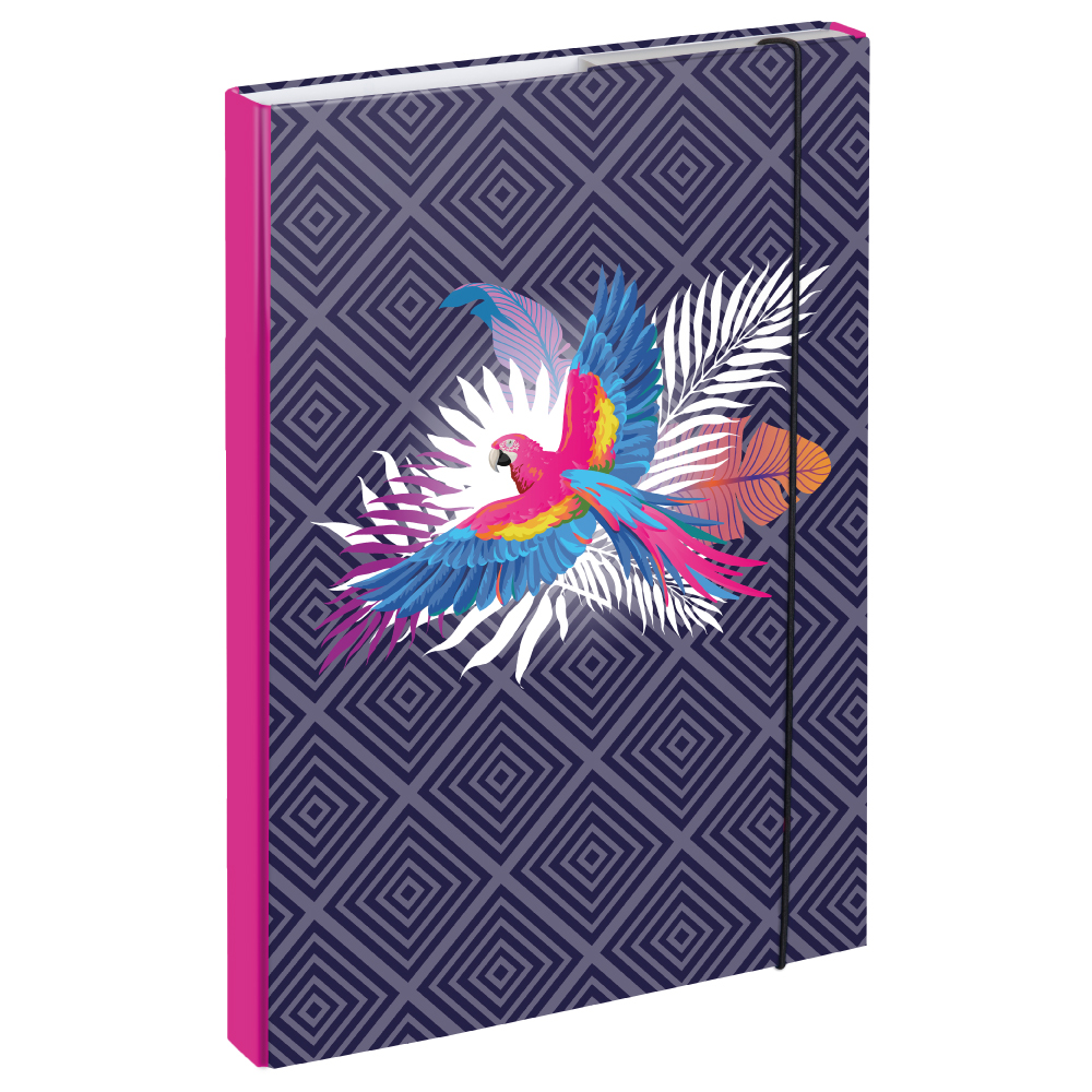 • Ochranné dosky na úschovu zošitov alebo iných dokumentov, s vnútornou klopu proti vypadnutiu, zaistené gumičkou.