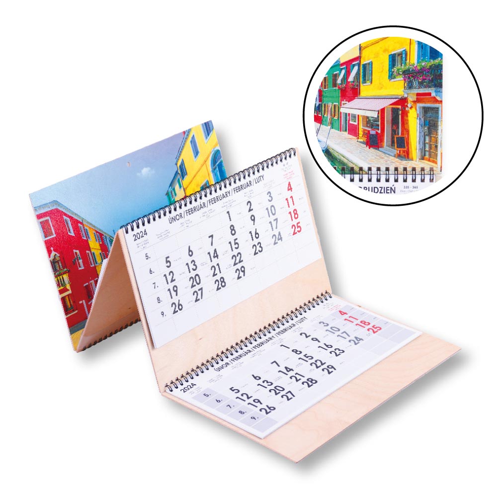 Drevený štvormesačný kalendár Kvatro Wood skládaný český so špirálou 2026 - sivý