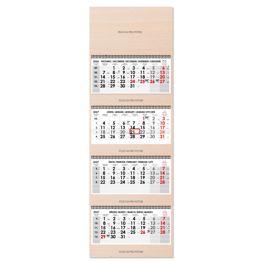 Drevený štvormesačný kalendár Kvatro Wood skládaný český so špirálou 2027 - sivý